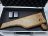 Ein besonderes Highlight des Wei-ETech Airsoftnachbaus ist die enthaltene Reproduktion des Futterals. Hergestellt aus Verbundkunststoff, ist es wie die Griffschalen sehr gut eingefärbt und besitzt ein sehr schönes Holzdesign. Neben der Funktion als herkömmliches Futteral* (siehe Foto Nr. 5) kann das "Futteral", wie beim Original auch als Anschlagschaft verwendet werden (siehe Foto Nr. 1 und 2 ). Durch einen Schnellverschluss kann der Schaft innerhalb weniger Sekunden angebracht oder abgenommen werden