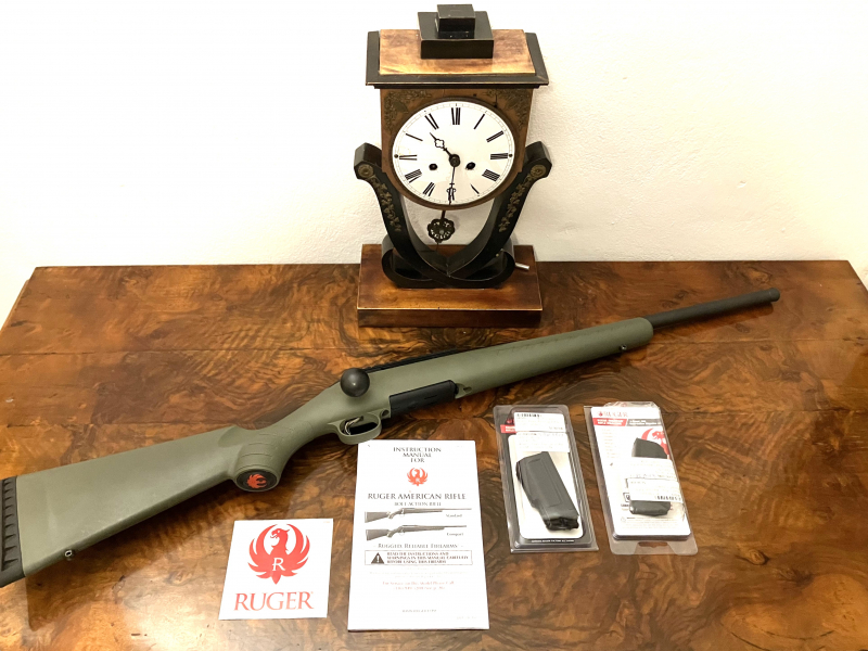Die gezeigte Ruger American Rifle Predator zeichnet sich vor allem durch ihre kompakten Abmessungen (Lauflänge 18,5 Zoll) sowie ihren robusten, rutschfesten Schaft aus. Durch die integrierte Montageschiene können sämtliche Zielfernrohre ohne die Zuhilfenahme eines Büchsenmachers problemlos und kostengünstig selbst montiert werden. Das Mündungsgewinde (5/8x24) ermöglicht den Einsatz eines Schalldämpfers. : - )