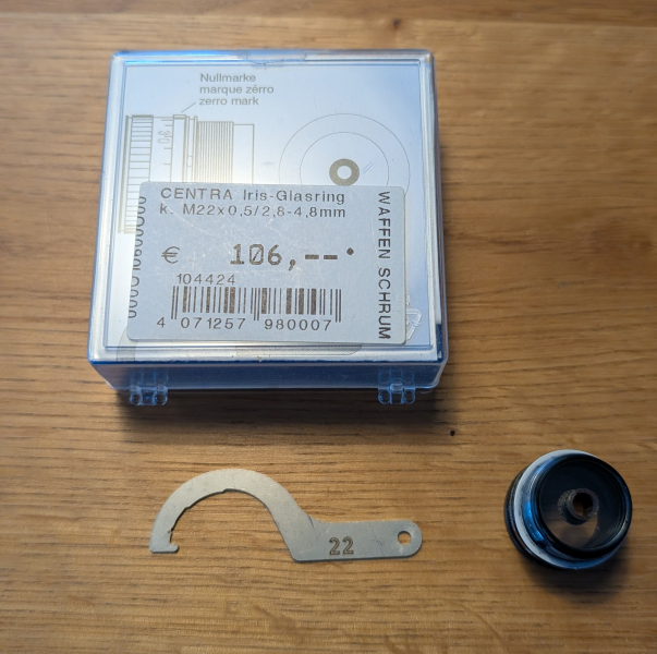 Sie bieten auf ein verstellbares Centra Glasringkorn mit 22er Durchmesser und einem Verstellbereich von 2,8 bis 4,8.