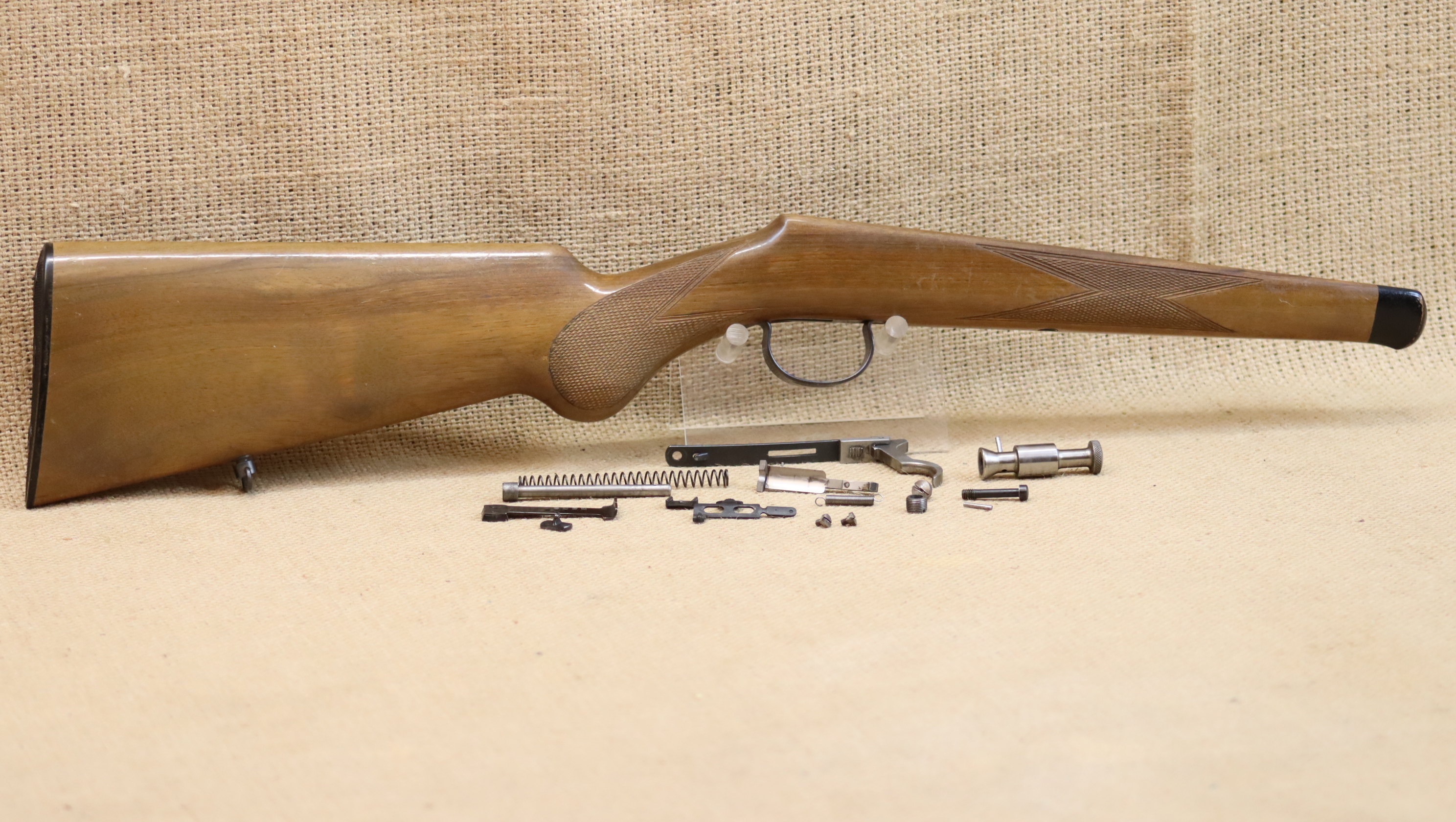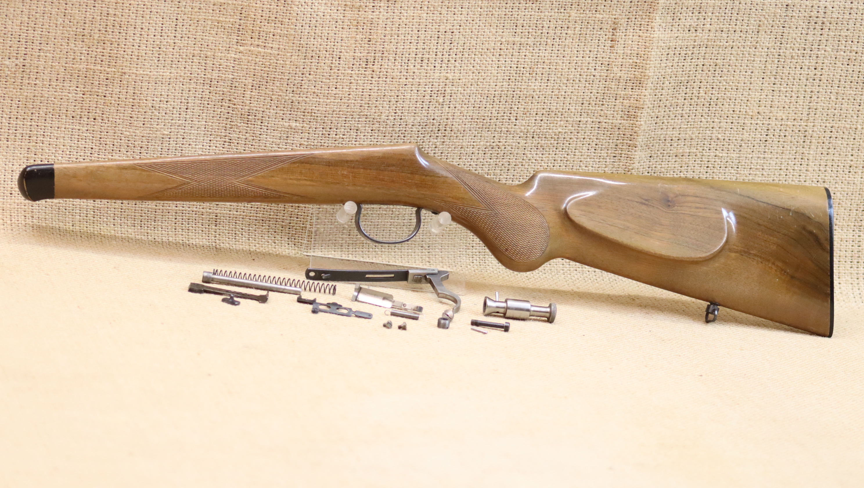 Abzug, div. Kleinteile u. Gewehrschaft eines Anschütz Gewehres im Klaiber 6 mm, wie abgebildet. Die Versandkosten gelten für Deutschland, Auslandsversand bitte anfragen. Privatverkauf, keine Grarantie oder Rücknahme.