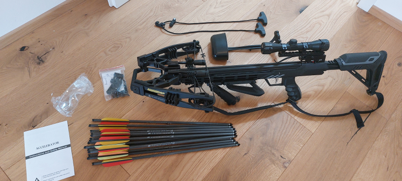 Hallo, aus dieser Armbrust wurde tatsächlich nie geworfen. Sie wurde NIE gespannt. Sie stand die ganze Zeit bereit für die Zombie Apokalypse, die leider ausgefallen ist.