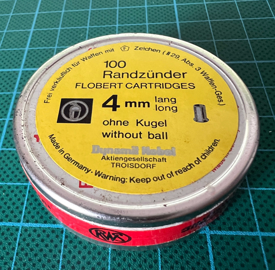 1 Schachtel (100 Schuß) Flobert Randzünder ohne Kugel.