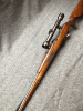 Sehr interessanter Carbine-Umbau mit wunderschönen Gravuren. Optisch an traditionelle Jagdstutzen angelehnt. Interessant ist dabei, dass es sich aufgrund der Seriennummer um eine späte Inland-Division Produktion (5/44- 12/44) handeln muss. Diese wurden in eben jenem Zeitraum als M1 und M2 gebaut. Hier war die Ausgangsvariante ein ehemaliger M2, was teilweise noch gut zu erkennen ist ( z.B. runder Verschluss, großer Magazinhalter…) Die Gravuren sind sehr reichlich und geschmackvoll ausgeführt. Auch die Zielfernrohrmontage wurde geschickt integriert. Laut Erzählung soll es sich um den privaten Umbau eines US- Soldaten gehandelt haben, der damit in den frühen Nachkriegsjahren in der Besatzungszone gejagt hatte. Das Zielfernrohr hat das Absehen 1. Noch klare Sicht. Läßt sich satt einhaken. Das Magazin ist dabei und fasst 5 Schuss. Die Waffe hat keine ehemaligen KWKG Umbauten, wie z. B gekürzte Verschlusswarze.