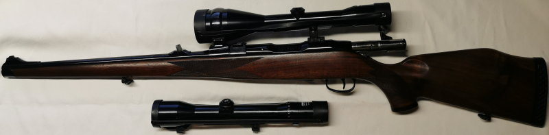 Sie bieten hier auf einen gebrauchte Sauer & Sohn Repetierstutzen Model Sauer 80 im Kaliber .308 Winchester. Die Lauflänge beträgt ca. 50 cm und die Gesamtlänge nur ca. 102 cm, damit ist die Waffe führig und stößt auch im engsten Raum nicht an. Der sehr schöne, kontrastreiche Maserholz-Ganzschaft mit Monte-Carlo-Effekt, Deutscher Backe und Pistolengriffabschluß aus Edelholz ist mit einer ventilierten Gummischaftkappe ausgestattet und bis zum Abzug ca. 36 cm lang. Die Waffe hat ein Zeiss Diatal-Z 8 x 56/4 und ein Zeiss 1,5 – 6 x 42/4 und beide Zielfernrohre sind mit einer SEM montiert. Die Waffe verfügt über einen Kombiabzug mit Rückstecher und Flintenabzug. Ein zweites Magazin ist dabei; Unsere Meinung: TOP Waffe, TOP Zustand, TOP Ausstattung; Gerne können Sie einen Termin vereinbaren die Waffe vor Ort zu sehen. Bei Fragen, einfach schreiben; Schaut euch die Bilder an.