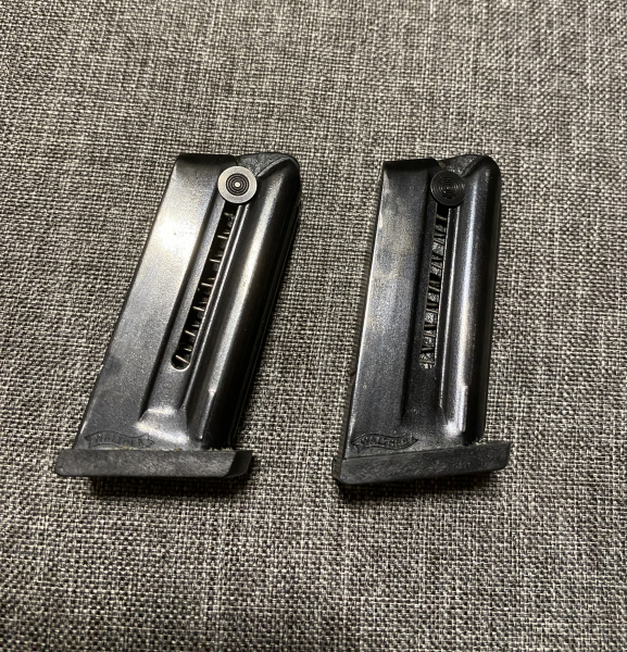 Zum Verkauf stehen zwei Magazine der Marke Walther für die Walther GSP im Kaliber .22 lr. Die Magazine sind gebraucht, aber in gutem und gepflegtem Zustand. Ladekapazität 5 Schuss. Keine Garantie, kein Umtausch, keine Rücknahme. Der Verkauf erfolgt unter Ausschluss jeglicher Sachmängelhaftung.