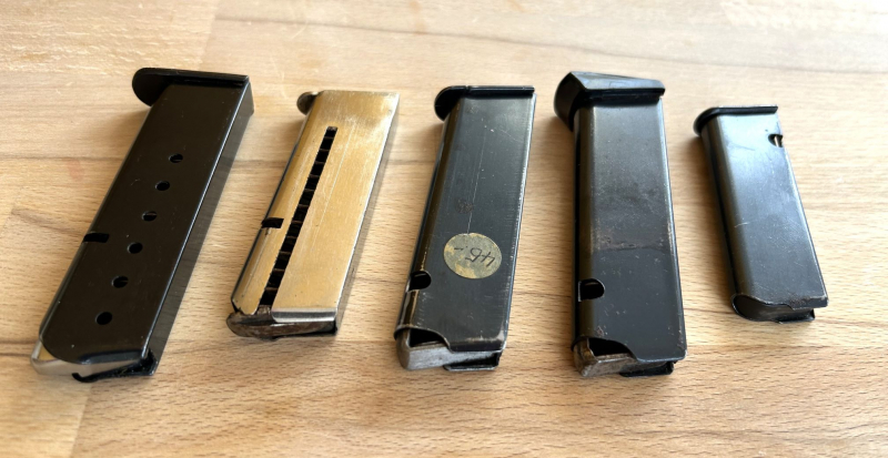 5 verschiedene Magazine im Kal. 7,65 mm bzw. 6,35 mm Browning