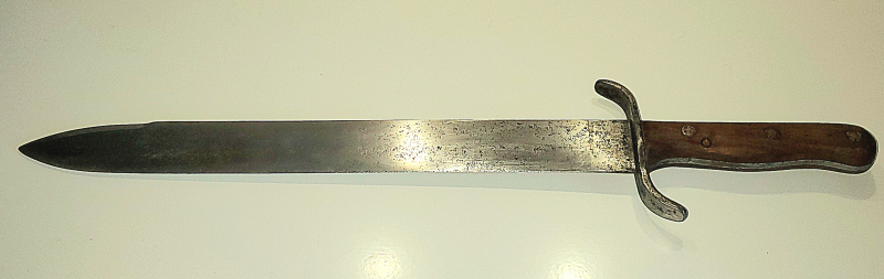 Österreichisches Faschinenmesser M1915 K. u. k. Österreich, Pioniersäbel, Fleischhacker. 3-fach vernietete Holzgriffschalen. Länge gesamt: 54 cm. Länge Klinge: 39,5 cm. Klinge an der Spitze beidseitig geschliffen (siehe Fotos). Zustand siehe Fotos.
