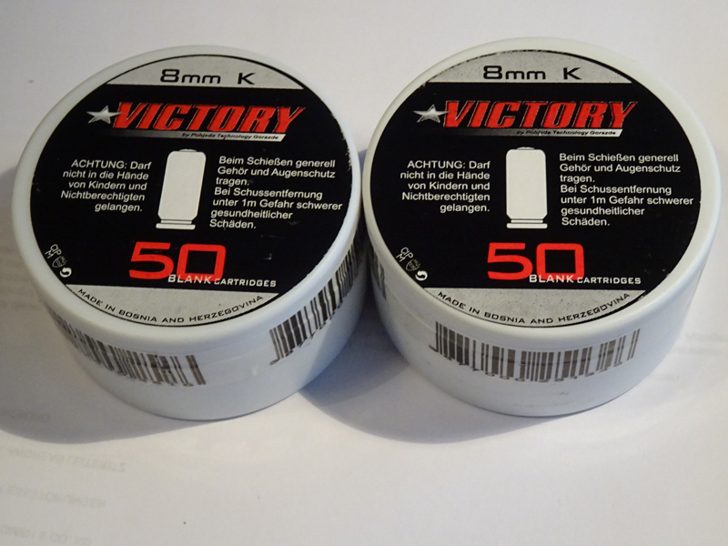 Verkaufe 2 original versiegelte Dosen mit je 50 Stück 8 mm Victory Knallpatronen. Diese Munition hat bisher immer zuverlässig in meiner RG9 funktioniert. Der Versand ist für 5,00 € über Hermes versichert und mit Sendungsverfolgung möglich. Die Munition wird also rechtzeitig zu Silvester beim Käufer sein. Privatverkauf -keine Garantie oder Rücknahme.