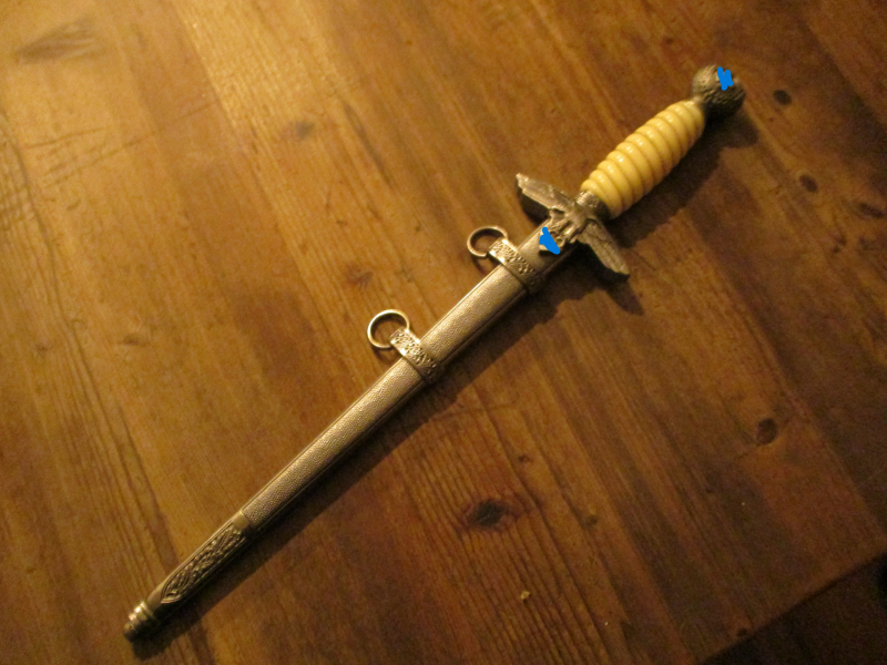 Luftwaffen Offiziersdolch mit Silberdrahtwicklung am Griffstück, Zustand siehe Fotos.