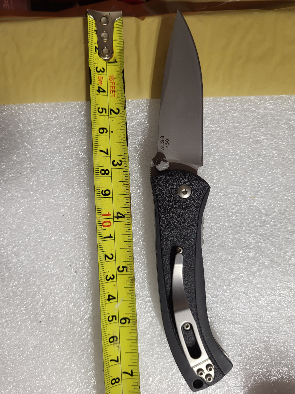 AUS-8 ist ein japanischer Stahl, der (neben den selteneren und unter AUS-8 rangierenden AUS-6 und AUS-4) seit langer Zeit in der Messerbranche zum Einsatz kommt Die Maße sind auf den Fotos ersichtlich, und die Bilder sind fester Bestandteil der Auktion. 📏📸
