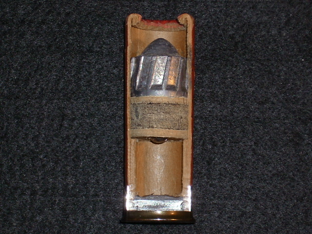 cal.12 Schnittmodell Pappe mit Brenneke Geschoß , Express Gustav Genschow - Karlsruhe Durlach (Maschinenfertigung)