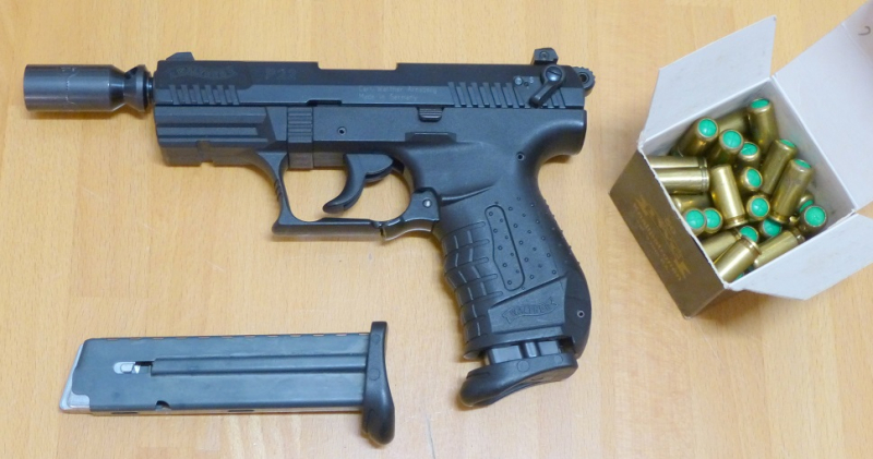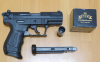 Walther P22 cal. 9mm P.A.K. mit Ersatzmagazin und Zusatzlauf für Signalmunition , dazu eine Packung 9mm Platzpatronen ca. 44 Stück , voll funktionsfähig , zustand siehe Fotos , Baujahr (AD) = 2003 ,