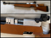 Sie bieten hier aus Sammlungsauflösung auf ein sehr seltenes Haenel-Luftgewehr Modell MLG 554 M aus Suhl. Das Luftgewehr ist ein Seitenspanner und funktioniert mit vorkomprimierter Luft. Es schießt daher prellschlagfrei. Zu DDR-Zeiten war es die letzte Entwicklungsstufe und das beste Luftgewehr! Das MLG 554 hat nur wenige Gebrauchsspuren und funktioniert einwandfrei, der Druck ist sehr gut. Der Schaft ist wirklich gut und ohne Risse. Hinten am Schaft war einmal ein Stück Leder aufgeklebt. Die originale Brünierung ist ebenfalls einwandfrei und neuwertig. Das MLG 554 M wurde im Jahr 1986 hergestellt, mit Gewehrpass und Waffenbegleitkarte, nummerngleich zur Waffe, auch das ist extrem selten! Das Luftgewehr wurde in der DDR vor 1990 hergestellt, deshalb frei verkäuflich an Personen über 18 Jahre. EU-Versand 23€. Start 1€