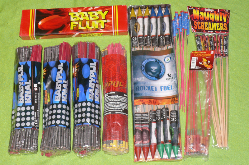 3x 100 Stück Babyraketen Knal mit leichtem Knister-Effekt. Die Baby-Raketen haben eine Länge von ca. 28cm und sie fliegen ca. 10 –20m hoch.