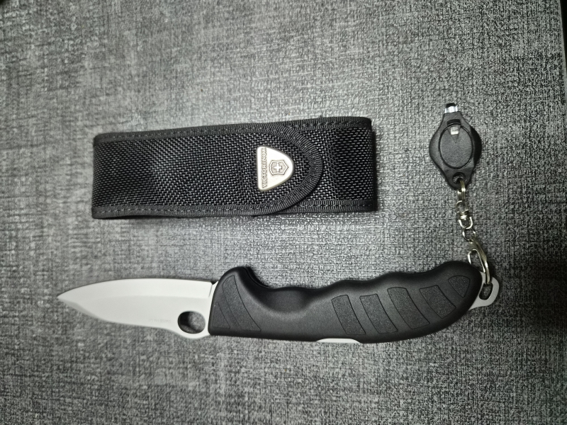 Ich biete aus meiner Sammlung ein neues großes Victorinox Jagdmesser Hunter Pro in schwarz, original Tasche in schwarz, Mini Ledlampe.