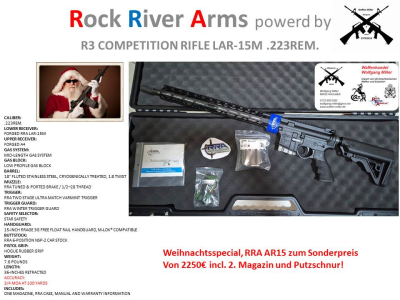 Biete ein AR15 im Kaliber .223Rem. Modell X-Series X-1 Rifle in Tan des US amerikanischen TOP Herstellers Rock River Arms! Sie werden mit dieser Waffe jeden anderen Selbstlader in Punkto Präzision und Verarbeitung schlagen! Kein Oberland, Schmeisser, Windham, Hera!!! Die Waffe verfügt über einen 18 Zoll gefluteten Stainless Match Lauf , 1:8 , Lauf freischwingend, RRA TWO STAGE MATCH Abzug und 10 Schuss Magazin! Die Waffe wird im Rock River Koffer geliefert! Bitte vor dem Kauf Kontakt zu mir aufnehmen! Ein kostenloses Einlagern bis zur EWB ist kein Problem! Rock River Arms gehört zu den besten Waffenherstellen Weltweit und ist in den USA die Nummer 1 Sie werden keine bessere Waffen bekommen! Auch andere Modelle in verschiedenen Kalibern des Herstellers lieferbar! Lieferzeit und Preis bitte anfragen!!!!!! WWW.Waffen-Miller.de Rock River Arms ist einer der Weltweit besten Waffenhersteller, sollten Sie mit der Waffe nicht zufrieden sein, nehme ich sie wieder zurück(qualitativ oder Schussleistung) !Rock River Arms ist der einzige Hersteller der eine Präzisionsgarantie von einem 3/4 MOA auf 100m gibt. www.waffen-miller.de Wir führen auch Waffenexporte ins Europäische Ausland durch, fragen Sie an !! Kaliber .223Rem. LOWER RECEIVER:Forged RRA LAR-15M