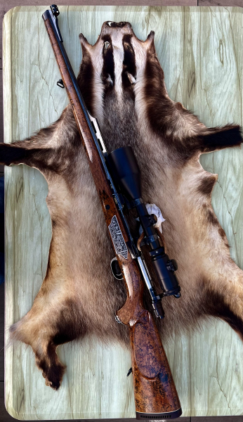 Verkaufe hier schönen Stutzen im Kaliber 9,3x62 mit RWS Glas 3-9 x56 schönes Tigernuss Design mit eingesetzten Gravuren rechts und links, 24 Karat Blattgold auf Visierlinie und Schrift , Hirschgrandel auf Sterlingsilber als Abschluss, tolle Waffe zum Pirschen,.. dazu handgefertigtes Trageholster (Rücken) aus 4 mm Rüstungsleder (Rind)mit Rotwild Motiv ( Prägung). Bei Fragen gerne melden.
