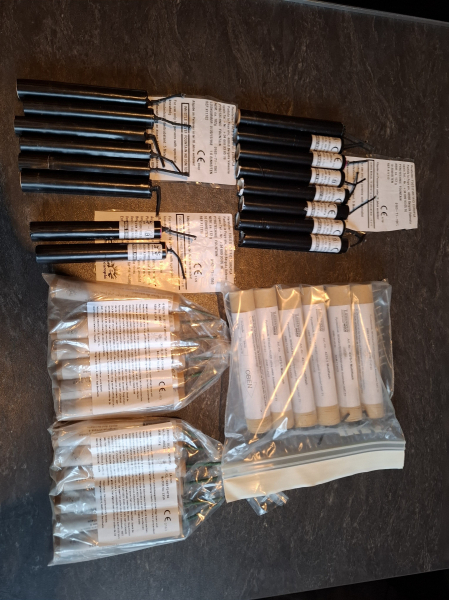 Verkaufe hier ein großes Set mit T1 Pyros, frei ab 18. Mit dabei: 6x Weco Multiflash, 12x spanische El-Gato Borracho Silver Whistle, 2x Europla Fuchsia Bengal zu Silver Whistle Fountain, 8x Europla Lemon Bengal zu Silver Whistle Fountain, sowie 6x Europla Silver Whistle.