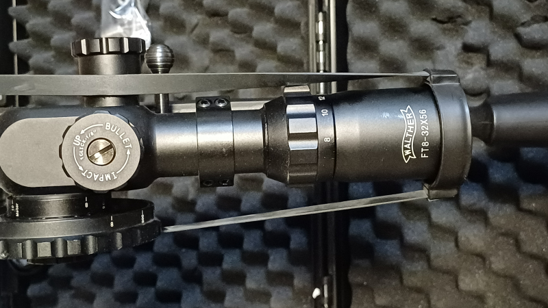 Das Luftgewehr wird als Set angeboten mit einem ZF von Walther 8-32x56 , mit Druckbehälter Koffer, Beschreibung.