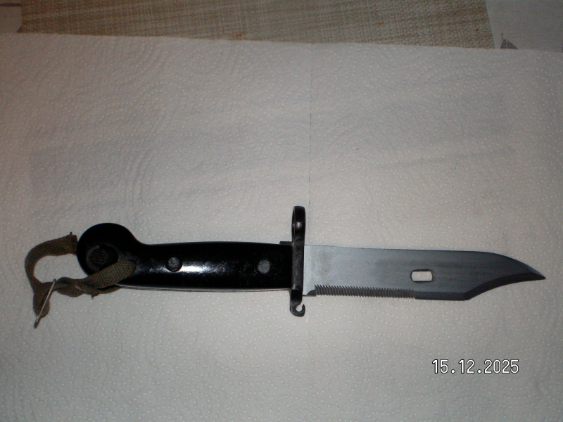 Zum Verkauf kommt dieses exzellent gut erhaltene Kampfmesser mit Sägezahnrücken und Drahtschere für das Gewehr AK 47. Privatverkauf, keine Garantie, keine Gewährleistung, keine Rücknahme, kein internationaler Versand. Altersnachweis erforderlich. Versand deutsche Inseln bitte erfragen. Danke.