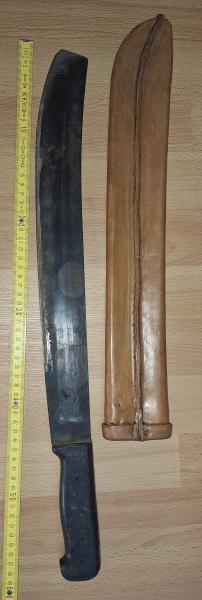 Sie bieten auf eine Machete aus einer Haushaltsauflösung. Warum die Spitze fehlt kann ich nicht sagen.
