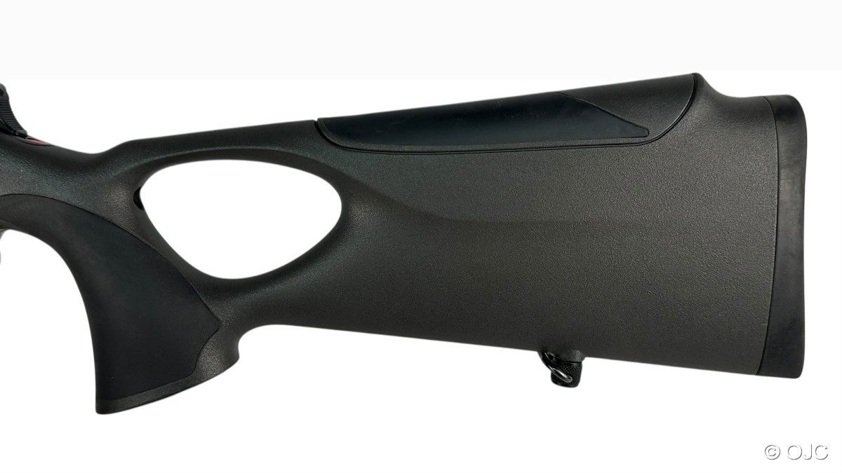 Diese deutsche Selbstladebüchse im beliebten Kaliber .308 Winchester verfügt über einen nahezu unverwüstlichen Kunststoffschaft, einen verstellbaren Schaftrücken und eine Handspannung. Inklusive 2-Schuss-Magazin und Riemenbügel (im hinteren befindet sich zudem das Werkzeug, um den Schaftrücken zu verstellen).