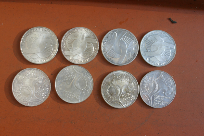 Aus grossem Vorderladernachlass-- 8 stk. ---2 vollst Sätze a 4 stk mit allen 4 Prägeorten --zustand s. fotos--etwas patina mal putzen --ich wiege 15,42 - 15,52 g-- sehr gut erhalten--- Rand OK -- die Prägejahre und Motive entnehme man den Fotos--betr weiterer infos verweise ich auf die Fachliteratur--gute prepperware weil noch gut bekannt--