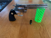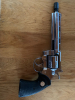 Ich biete hier einen sehr gepflegten Schreckschuss-Revolver Umarex Mod. Denver Silver im Kaliber .380 K an. Der Revolver ist verchromt, hat schwarze Griffschalen und einen Abschussbecher zum Draufdrehen (für Signal-/Platzpatronen). Er ist technisch absolut einwandfrei und nahezu neuwertig – keine Kratzer, keine Beschädigungen. Der Revolver verfügt über eine ausklappbare Trommel mit 6 Schuss Kapazität. Die Mechanik funktioniert sauber und zuverlässig.