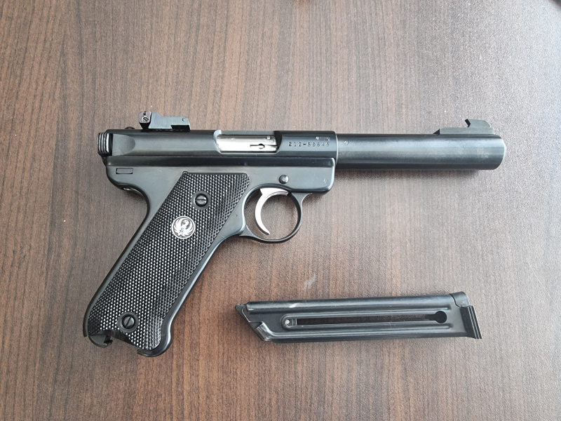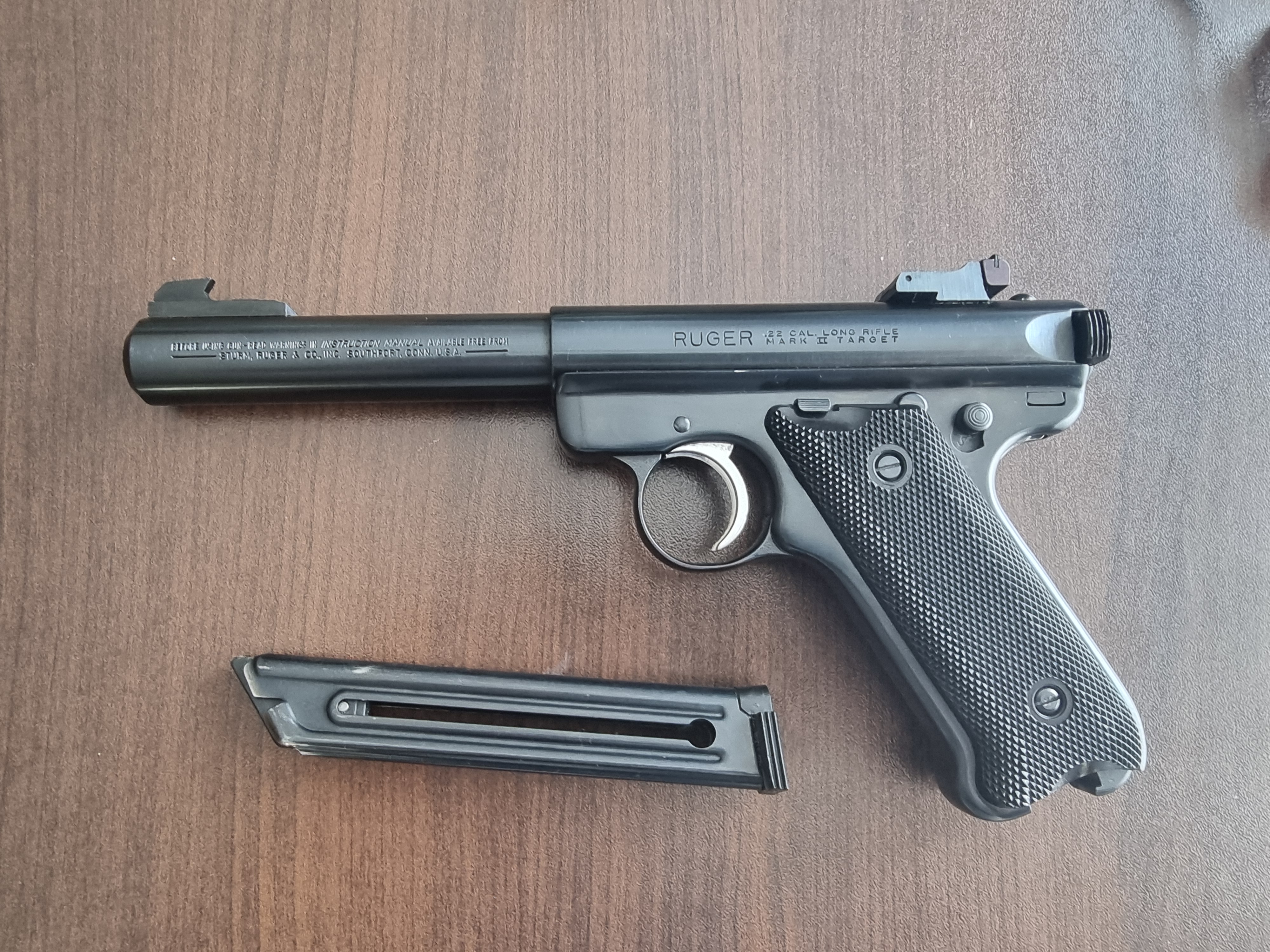 Verkaufe gepflegte Kk-Pistole Ruger Mark II, kein Rost, trotz Ihres Alters. 1984 bei Frankonia in Kassel gekauft. Immer gepflegt umd geölt. Macht mir ein Angebot. Versand erfolgt mit Overnite, daher besser Abholung