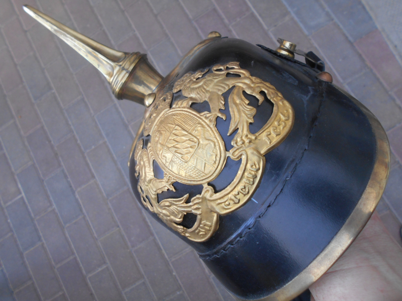 Hochwertige Pickelhaube(dickes Rindsleder) mit Wappen vorn Preußen, wahrscheinlich 1990er Jahre(gekauft bei Frankonia-399 DM), Alles komplett mit gut erhaltenen originalen Innen-Leben samt Kinnriemen. Grösse 58/59/60. Ab sofort schreibt das neue EU-Gesetz vor, nachfolgenden Vermerk aufzuführen: "Ich verkaufe bei meinen Verkäufen ausschließlich Gebrauchtware, sofern nicht anders beschrieben. Diese Artikel sind aus meinem Privatbesitz und ich verfolge mit meinen Verkäufen keinerlei gewerbliche Zwecke. Eine Rechnung gibt es hierfür nicht. Da mittlerweile auch Privatverkäufer ein Jahr Gewähr leisten müssen, wenn sie das nicht ausschließen, erkläre ich hiermit ausdrücklich, dass ich für meine privat verkauften Artikel keine Gewährleistung und keine Rücknahme übernehme. Mit dem Kauf erklären Sie sich ausdrücklich damit einverstanden, auf die Ihnen nach neuem EU-Recht gesetzlich zustehende Gewährleistung/Garantie bei Gebrauchtwaren völlig zu verzichten!"