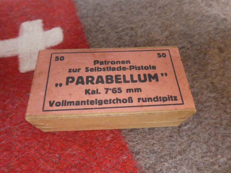 50 Patronen zur Selbstladepistole Parabellum Kal. 7,65mm Vollmantelgeschoß Rundspitze in einem tadellosen Zustand von 1933, siehe Bilder