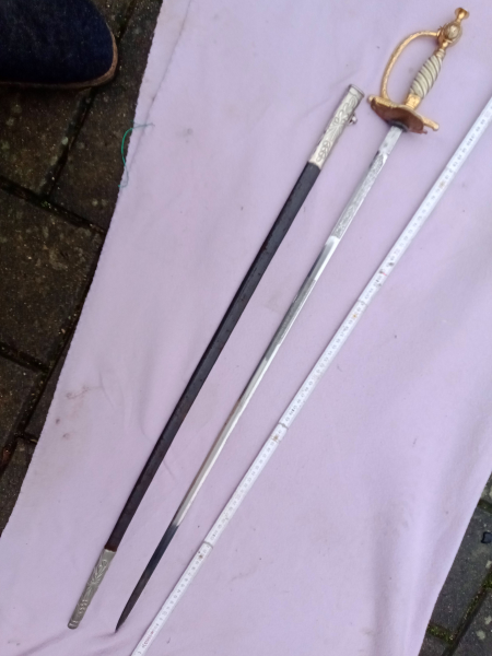 Biete hier einen schönen Degen von Carl Eickhorn vermutlich für Beamte an. Mit Degen kenn ich mich leider nicht so aus, ich kann nur sagen das das Logo auf der Klinge ab ca. 1874 verwendet wurde. Der Degen hat eine Gesamtlänge o. Scheide von ca. 95cm und eine Klingenlänge von ca. 80cm.