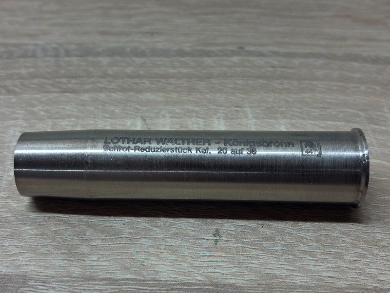 Verkaufe meinen Einstecklauf, Schrot-Reduzierlauf, Lothar Walther, Kaliber 20 auf 36. Den Zustand bitte von dem Bild entnehmen. Bei Fragen gerne melden. Da Privatverkauf kein Umtausch möglich.