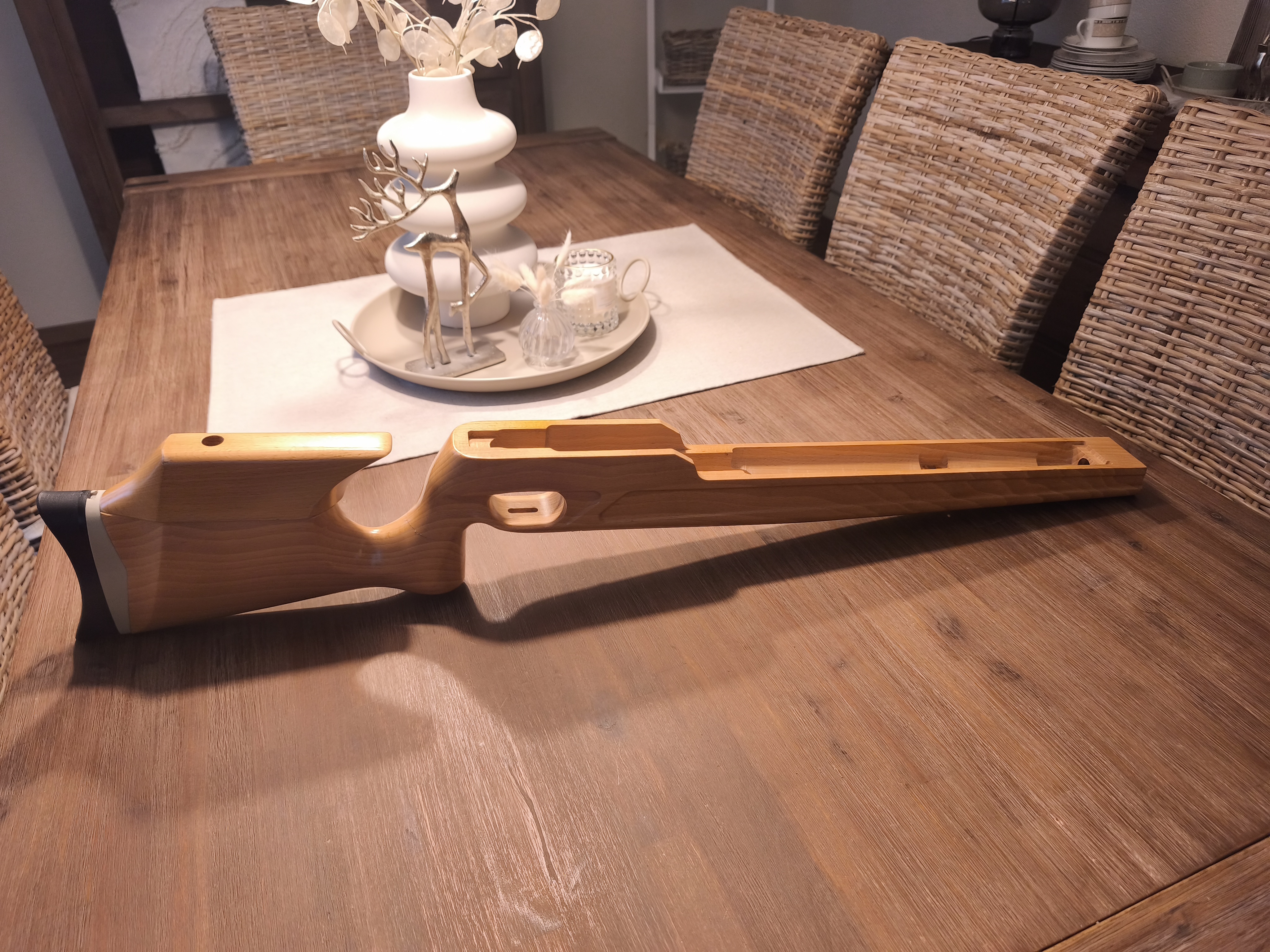 Lieferumfang: Ausschließlich der Holzschaft, ohne das Waffensystem (Lauf, Mechanik, Abzug etc.) und ohne Schaftkappe.