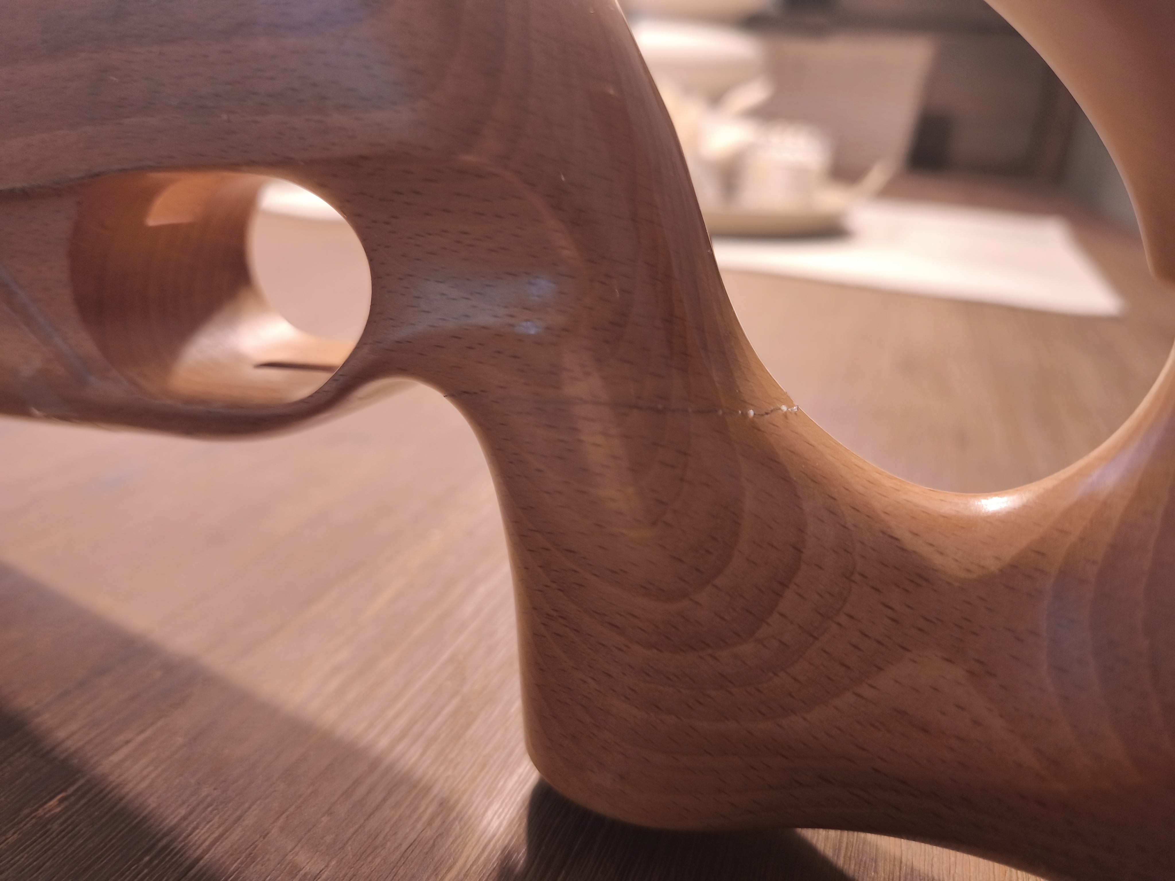 Bruchreparatur am Griff: Ein Bruch im Bereich des Pistolengriffs wurde fachmännisch repariert und ist stabil. Die reparierte Stelle ist funktional einwandfrei, aber optisch erkennbar (Bitte Fotos genau ansehen!).