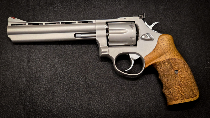 Die montierten ergonomischen Holzgriffschalen bieten sehr guten Halt und angenehmes Handling. Ein vielseitiger .357-Magnum-Revolver, der sich sowohl für Sport als auch für Sammler eignet.