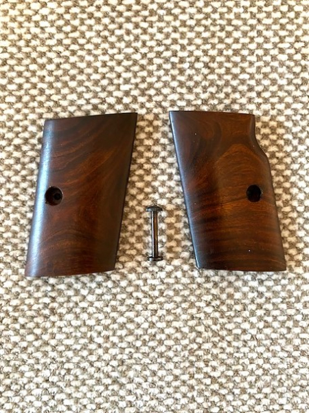 Ich biete hier ein Paar Edelholzgriffschalen für die Pistole C.G. Haenel/Suhl (Schmeisser's Patent) mit der dazugehörigen Befestigungsschraube an. Es handelt sich um eine qualitativ hochwertige Handarbeit eines Büchsenmachers. Die Griffschalen wurden aus dunkelbraunem, sehr ansprechendem Wurzelmaserholz gefertigt, was jede Taschenpistole nicht nur optisch aufwertet sondern auch für einen verbesserten Griff bei der Schussabgabe sorgt. Privatverkauf ohne Garantie, Gewährleistung oder Rückgaberecht. Die Versandkostenpauschale für Deutschland beträgt 10,- Euro und für EU-Länder 22,- Euro. Der Versand erfolgt mit versichertem Paket und Sendungsnummer.