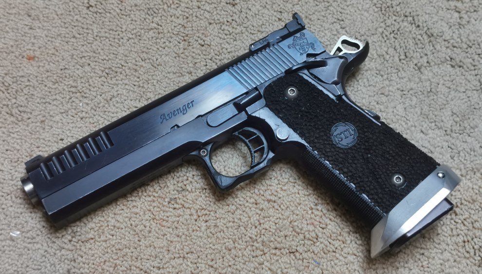 Die 2011-AVENGER ist so schon original eine Top-IPSC-Standard Waffe. Herausragende und ausgesuchte NOWLIN Präzision und Verarbeitung, bewährte STI Technik in Griffstück & "Lower", NOWLIN 5 Zoll Bull Barrel & Slide. Als beste Basis für IPSC STD MAYOR im Cal. 40S&W ausgesucht überzeugt diese super sauber verarbeitete und sehr präzise Waffe rundum. Sie hat ein traumhaftes Handling, ist wegen guter Gewichtsverteilung ihrer nur 1115gr.(leer) zudem blitzschnell.