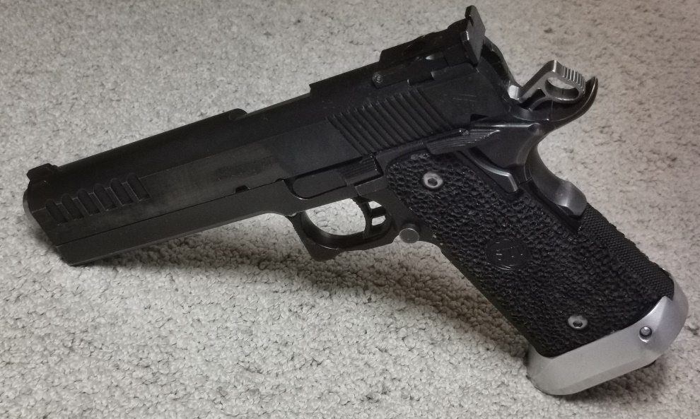 Sie hat einige obeflächliche Gebrauchsspuren und nur minimalen Verschleiß. Sie ist schön, stramm und ohne Macken. Ich habe Sie immer gut behandelt & gepfegt. Wer zum günstigen Preis mit Top Equipment Schieß-Sport betreiben möchte, ist hiermit goldrichtig. Ich biete zudem passendes Zubehör für Waffe und Reloading an. Downsizing auf 9x19 (Luger) mit einem 2011er Wechselsystem 9mm ist technisch und behördlich kein Problem mit dieser Waffe.