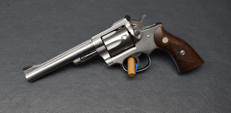 Holzgriffschalen mit Ruger Logo. Lauf und Trommelbohrungen sehr gut, Oberfläche 97%