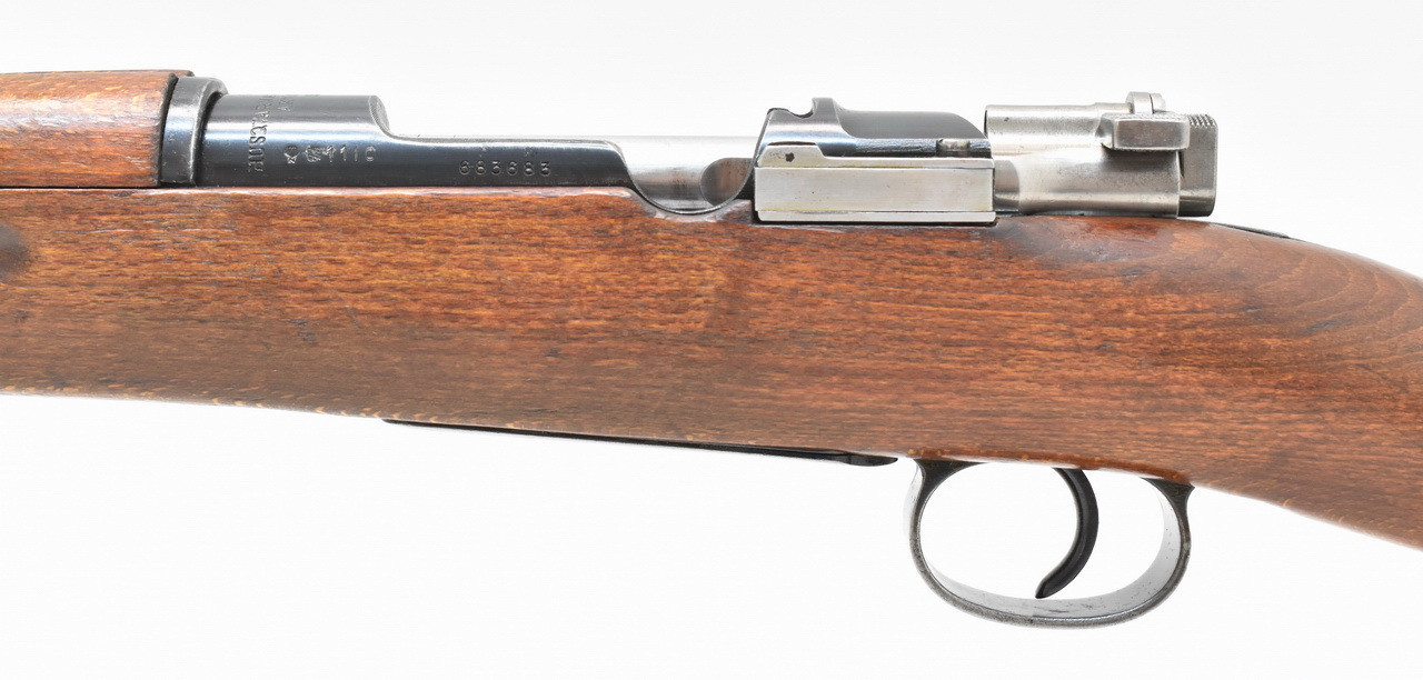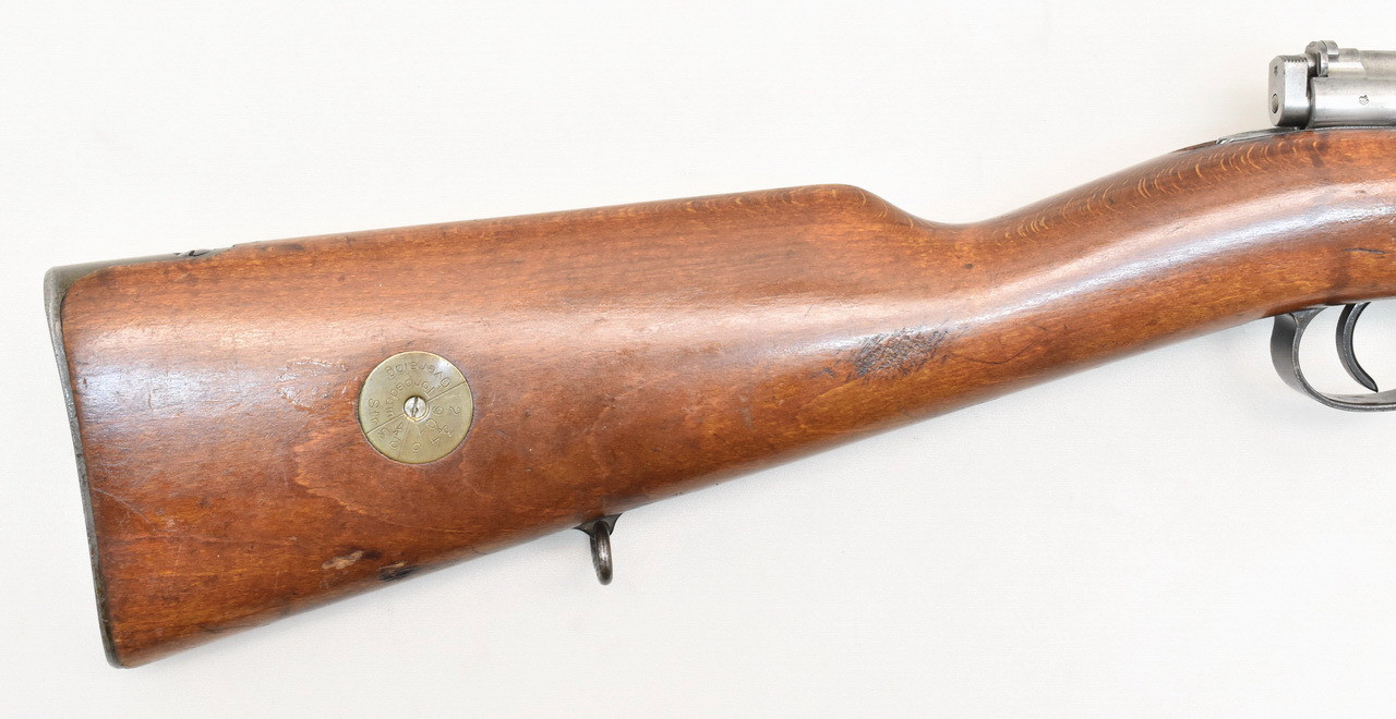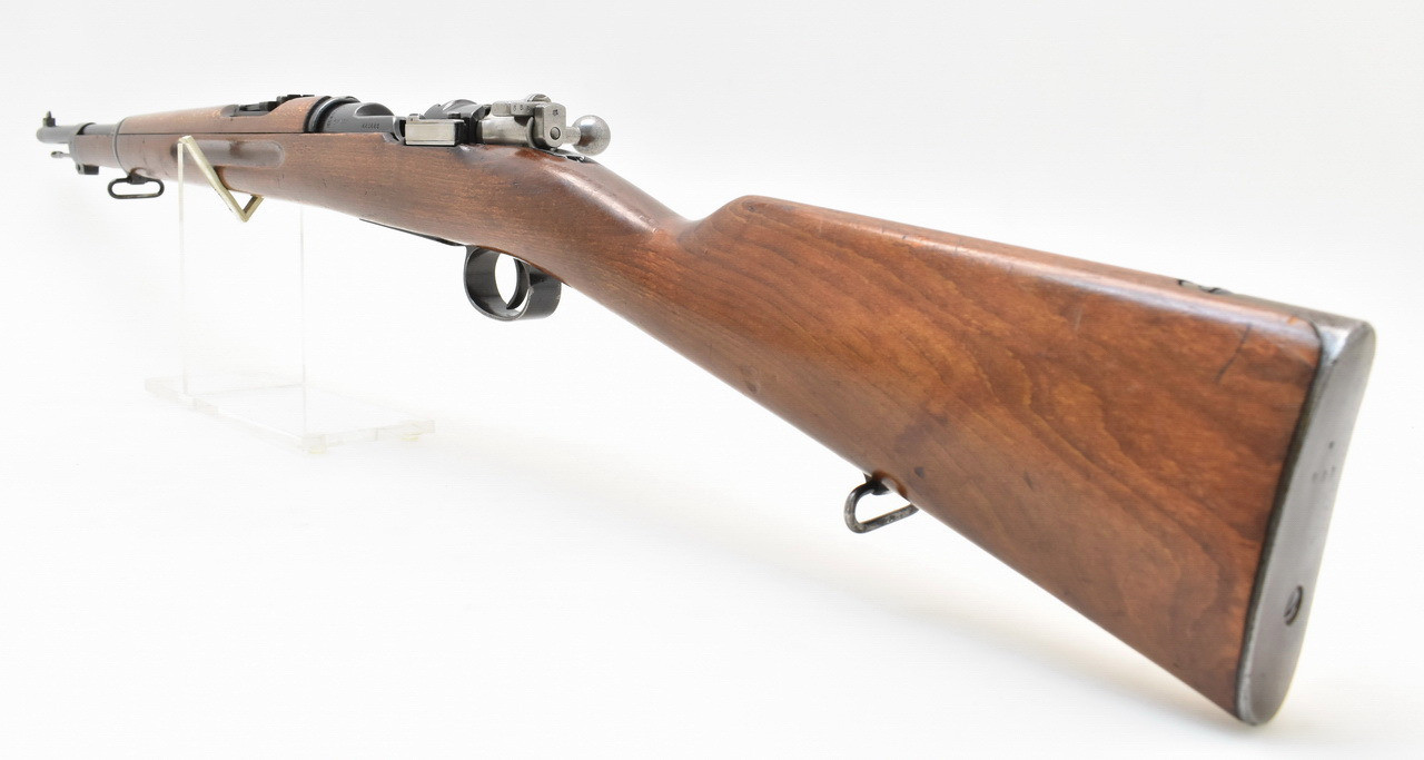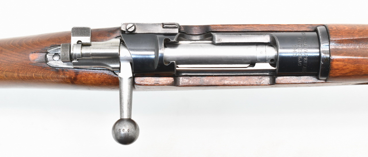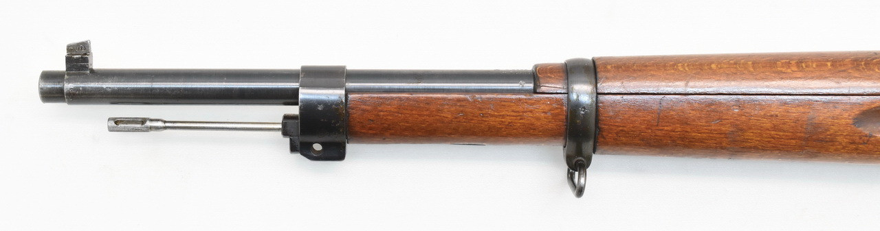 Nummerngleicher schwedischer Militär - Karabiner M/38 " Gevär m/38 " aus Produktion der Husqvarna Vapenfabriks Aktiebolag des Jahres 1943. Leicht matter Lauf. Mellrichstädter Beschuß 1982. Frankonia Vertriebsstempel. Metallteile mit beriebener Brünierung. Details siehe Bilder.
