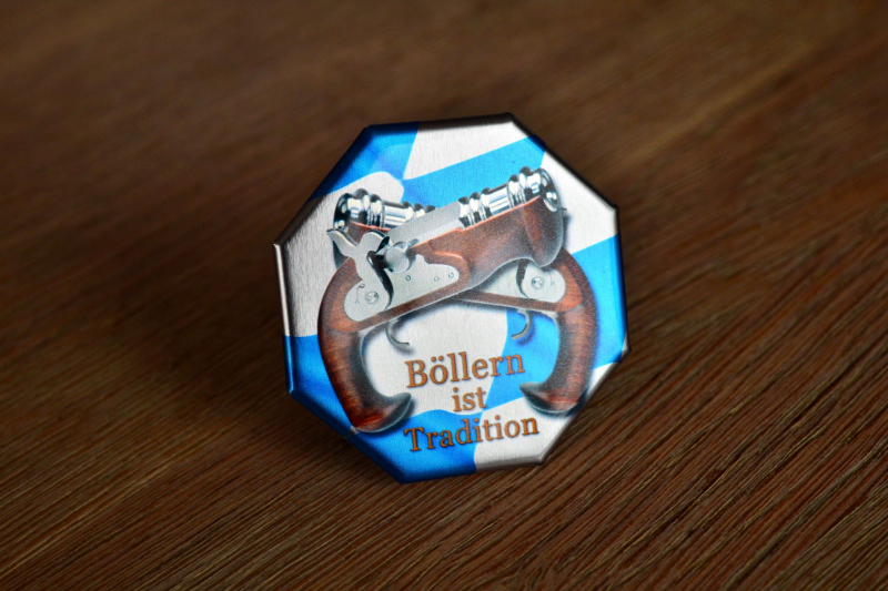 52 x 52 mm (achteckig) Nadelbutton Frontseite Blech