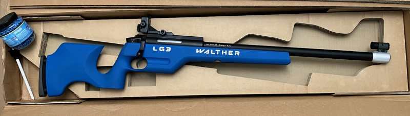 Walther 6mm BB Airsoft Gewehr LG3 Young Star uni rechts/links. Wurde entwickelt um (nach der Gesetzesänderung) im Schützenverein Schützen unter 12 Jahren das Schießen mit Kugel zu ermöglichen, als Alternative zum Lichtgewehrschießen. Dies setzte sich aber nicht durch und es wurden nur sehr wenige LG3 gebaut. Auch das macht das Gewehr zum Sammelobjekt in einer ernsthaften Walther Sammlung das diesen Technikabschnitt belegt. Die Funktion ist von Anfang an etwas hakelig und nicht immer zuverlässig. Es war eine Vorführwaffe und hat leichte Gebrauchsspuren.