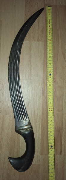 Sie bieten auf einen Säbel (?), ein Krummschwert (?) - oder zumindest etwas in der Art. Sehen Sie sich einfach das Bild an. Es stammt aus einer Haushaltsauflösung ... Der Griff schein hohl zu sein.