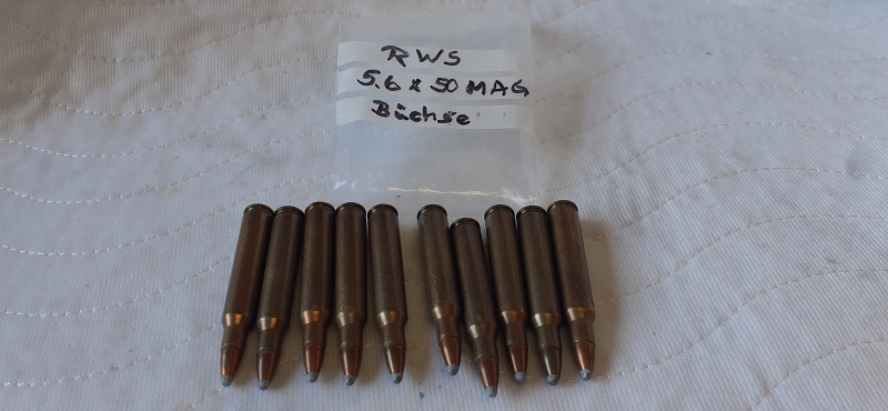 Aus einem Jägernachlass werden 10 Stück Jagdpatronen 5,6x50 Magnum von RWS angeboten . Der Verkauf erfolgt von Privat ohne Garatie/Gewährleistung und Rücknahme.