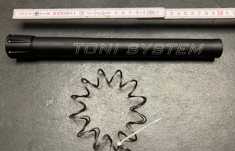 Sie bieten auf die abgebildete Magazinrohrverlängerung für Benelli Nova und Supernova Flinten, die abgebildete, passende Feder ist inklusive.