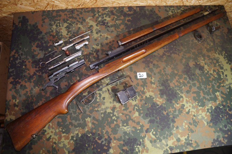 Achtung, aufgepasst: Sie bieten hier auf ein original schweizer K31 DEKO Gewehr / Karabiner. Zustand, siehe Fotos. Folgende Abänderungen hat dieser freie Teilesatz: Systemhülse wurde zerschnitten, Rohr 6-fach geschlitzt, zusätzlich noch hinter dem Patronenlager drei Bohrungen, Patronenlager verschweisst, Stahlstift im vorderen Laufdrittel verschweisst, Stossboden des Verschlusskopfs 45° abgeschrägt und Schlagbolzenloch verschweisst. Entgegen dem Egun Hinweis: es ist KEINE EWB erforderlich, weil es sich um freie Ersatzteile ohne waffenrechtliche Eigenschaften handelt! Versandkosten innerhalb Deutschlands 10 Euro, Versand ins EU-Ausland 30 Euro.