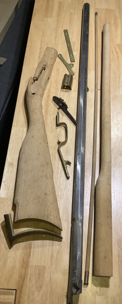 Sie bieten hier auf einen unvollständigen Bausatz eines mir unbekannten Vorderladergewehres, vorhandene teile sind auf dem Bild zu sehen, Abzug und Hammer fehlt soweit ich sehen kann. Gezogener Lauf ohne Piston und Beschusszeichen, außen Rostflecken vorhanden, vermutlich cal.45. Für Bastler oder Ersatzteile.