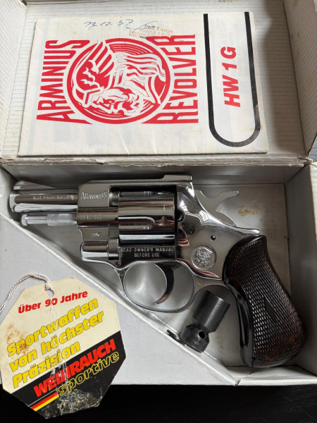 Weihrauch Arminius HW1G HW 1 G Chrom PTB 210, 9mm Schreckschuss Revolver Rarität Sammler Selten OVP