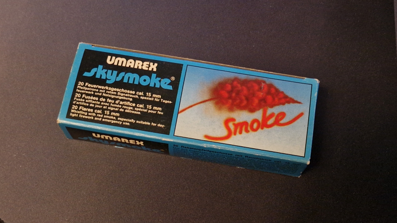 Extreme Seltenheit, Umarex Skysmoke von 1984, Pfeifpatronen mit rotem Signalrauch.